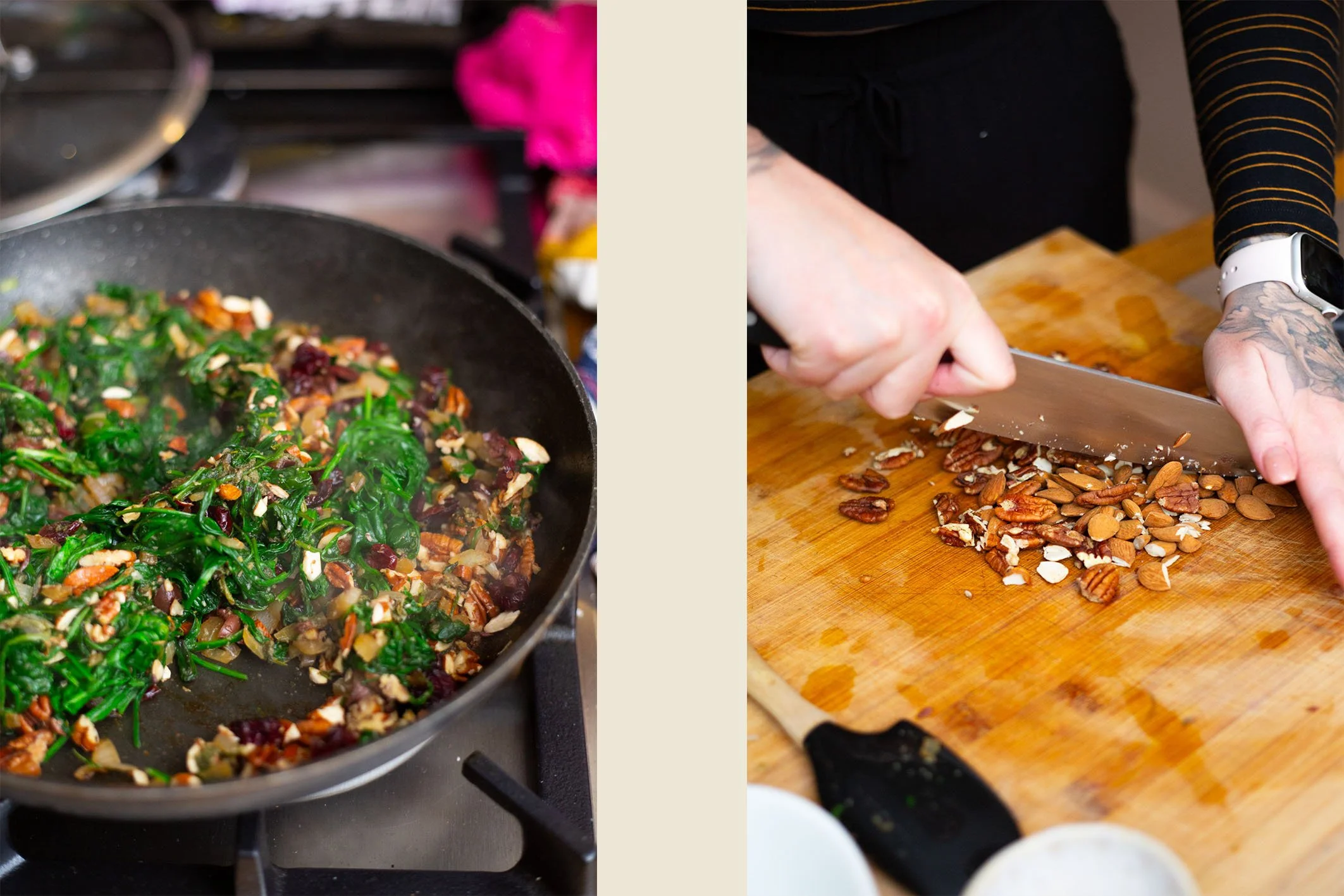 Allow to simmer for a few minutes until all the liquid has evaporated, as a soggy stuffing mix will lead to a soggy tart!