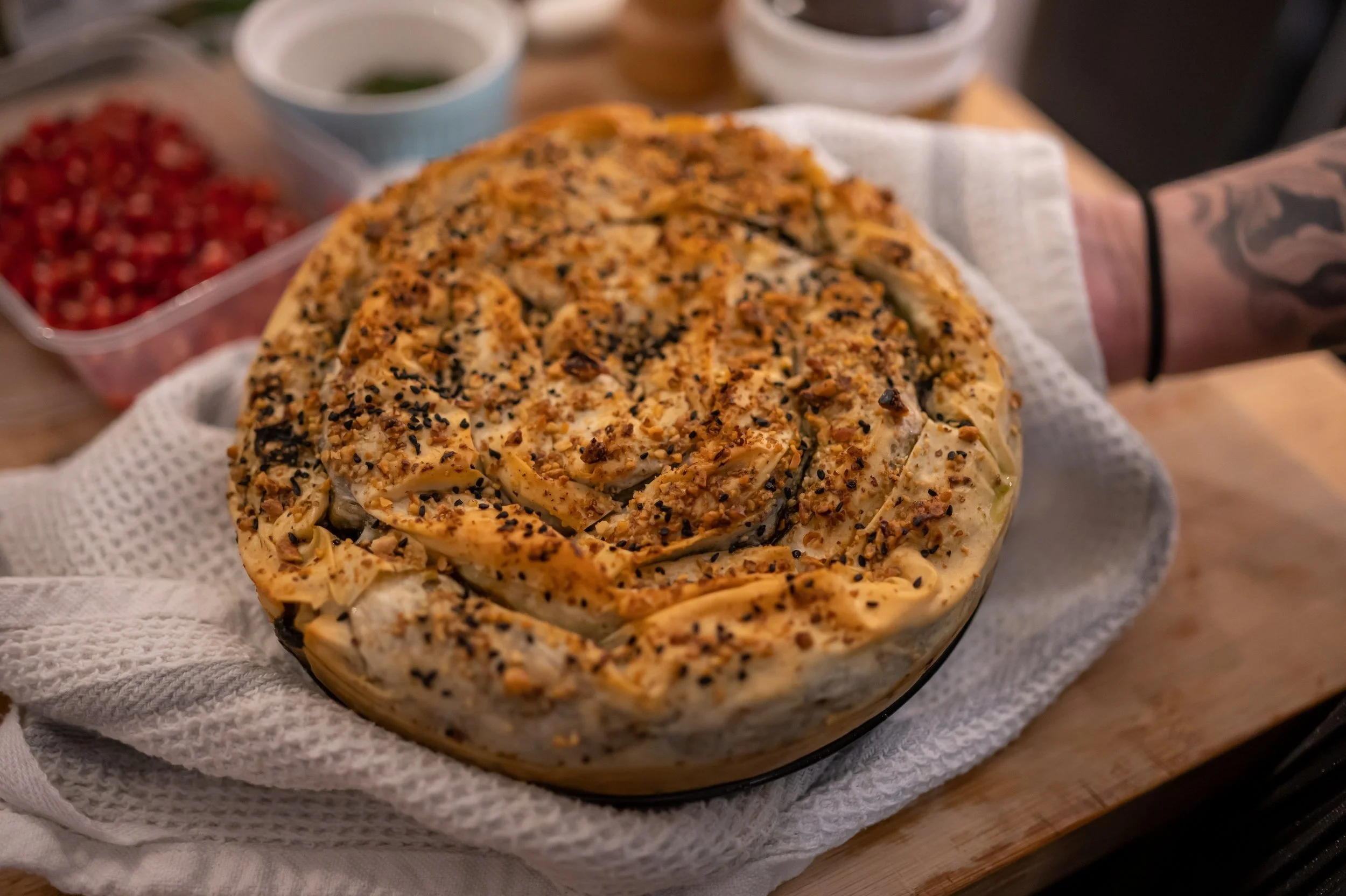 If you didn’t manage to book onto our Roast Dinner Evening, don’t worry, why not make this delicious spinach, cranberry & olive stuffing filo swirl at home?