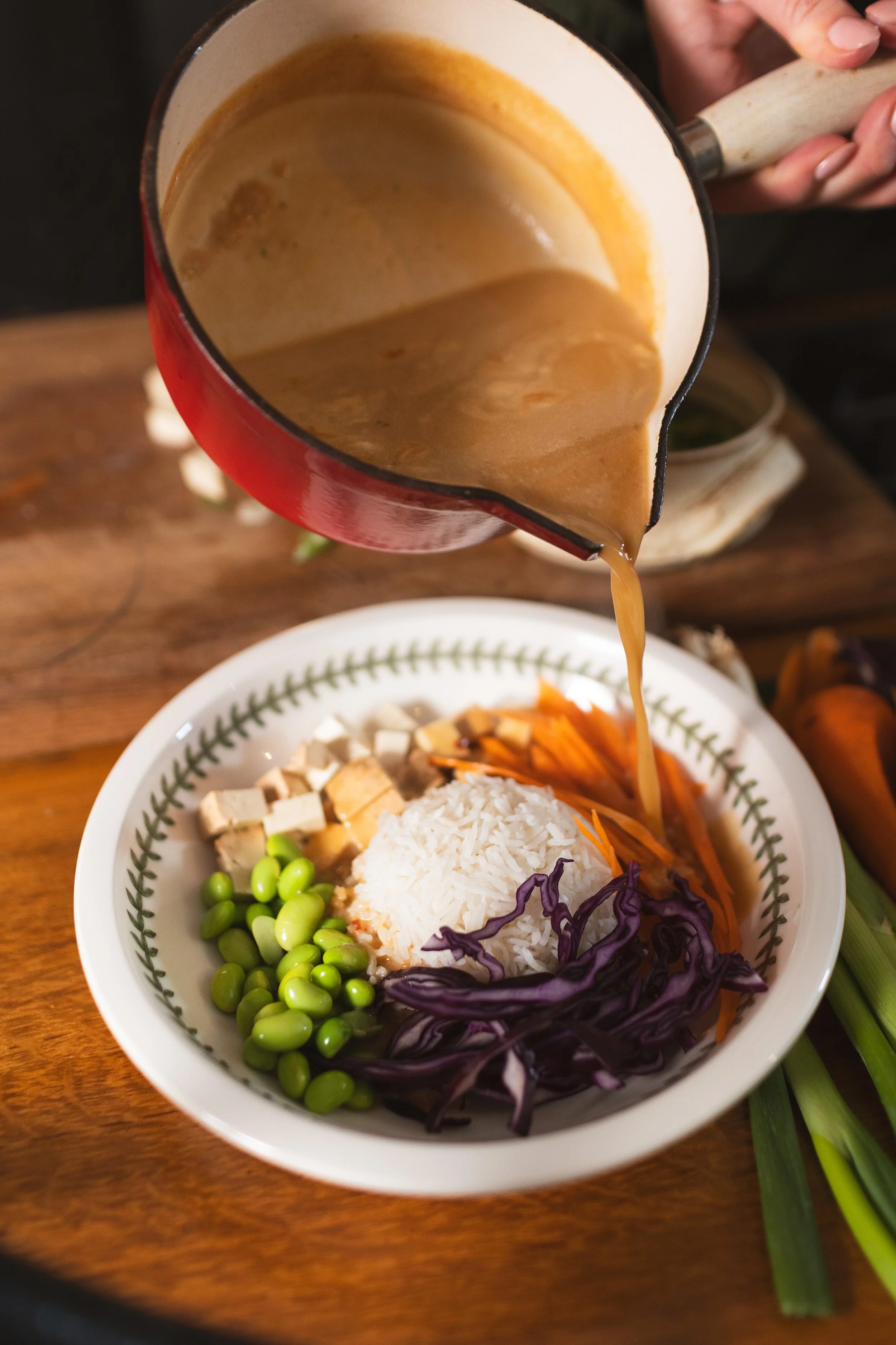 The magic is in the broth! This broth is doing all the heavy lifting. Nutty, salty, zingy, warming, and silky all at once.