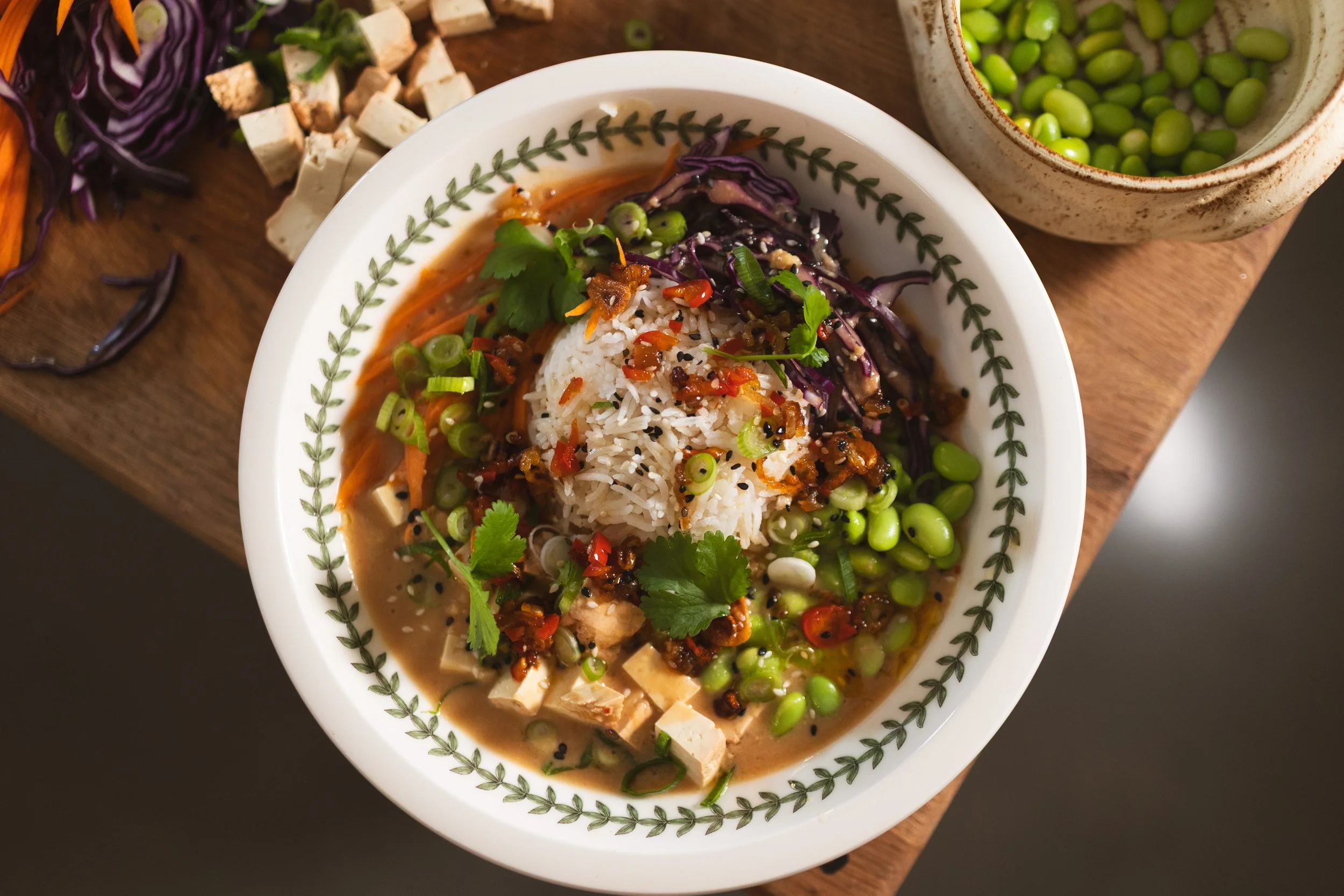 Cosy, comforting, absolutely packed with plants, and loaded with rich umami flavours from miso, tamari, peanut butter and lime. It tastes like it’s been simmering away for hours. It hasn’t. Ten minutes. Promise.