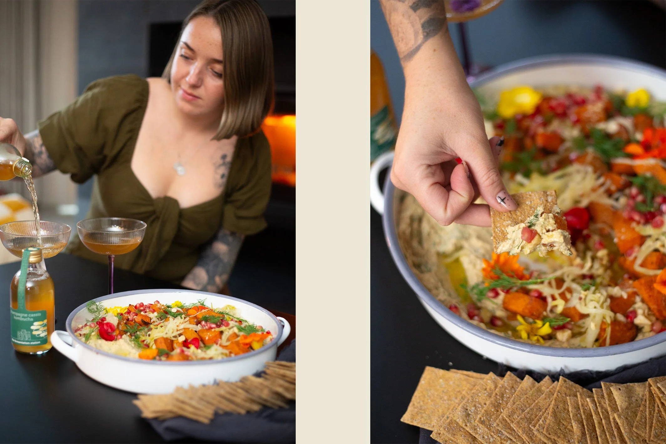 Grab a loaf of crusty bread, a selection of crackers and start dunking! Pair this sharer with a glass of Champagne Cassis Kombucha for that festive touch!